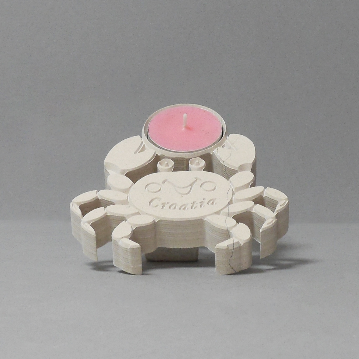 Svijećnjak u obliku raka izrađen je od prvoklasnog bračkog kamena sivca. Atraktivan izgled, dopadljiv dizajn te lučica s kojom dolazi u paketu čine ga nezaobilaznim dodatkom svakog stola ili police.